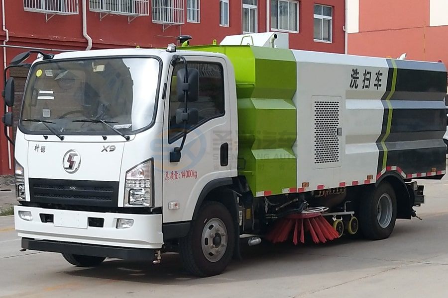 11、陜汽5噸中型洗掃車(chē)的垃圾箱內(nèi)帶有自潔功能,在垃圾傾倒完成后可將箱內(nèi)的殘留垃圾沖洗干凈,減輕環(huán)衛(wèi)工人的負(fù)擔(dān)。