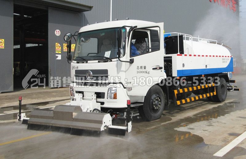 東風(fēng)天錦路面高壓清洗車罐體采用優(yōu)質(zhì)武鋼碳鋼板5mm厚,罐體容積8.0方,江鈴副發(fā)動(dòng)機(jī);德國(guó)高壓水泵(前置道路清洗支架/前沖/中置高壓清洗槍)/后高低2套噴霧(21+16不銹鋼噴嘴)20米沖洗水槍);威龍低壓泵(前沖/后灑/綠化高炮);法國(guó)空間開關(guān);尾部裝LDE箭頭燈。清洗寬度3.5米;清洗壓力10MPa;高壓沖洗高度大于等于21米。