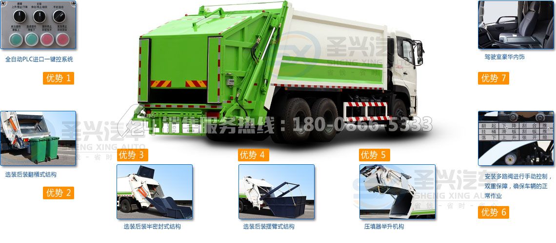 • 壓縮垃圾車:由密封式垃圾廂、液壓系統(tǒng)、操作系統(tǒng)組成。整車為全密封型,自行壓縮、自行傾倒、壓縮過程中的污水全部進(jìn)入污水廂,較為徹底的解決了垃圾運(yùn)輸過程中的二次污染的問題,避免了給人們帶來不便,關(guān)鍵部件采用進(jìn)口部件,具有壓力大、密封性好、操作方便、安全等優(yōu)點(diǎn)??蛇x配后掛桶翻轉(zhuǎn)機(jī)構(gòu)或垃圾斗翻轉(zhuǎn)機(jī)構(gòu)。 選裝配置:翻轉(zhuǎn)斗、掛桶架、PLC自控 壓縮方式:雙向壓縮等