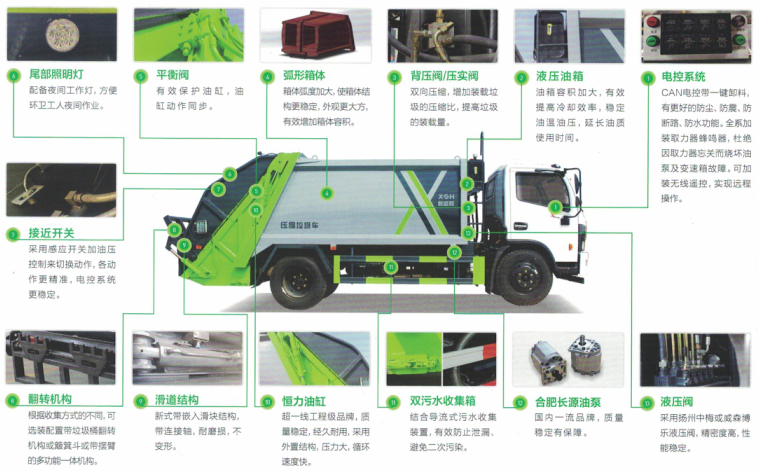 • 壓縮垃圾車:由密封式垃圾廂、液壓系統(tǒng)、操作系統(tǒng)組成。整車為全密封型,自行壓縮、自行傾倒、壓縮過程中的污水全部進入污水廂,較為徹底的解決了垃圾運輸過程中的二次污染的問題,避免了給人們帶來不便,關(guān)鍵部件采用進口部件,具有壓力大、密封性好、操作方便、安全等優(yōu)點??蛇x配后掛桶翻轉(zhuǎn)機構(gòu)或垃圾斗翻轉(zhuǎn)機構(gòu)。性能介紹:壓縮倍率:2-3倍 選裝配置:翻轉(zhuǎn)斗、掛桶架、PLC自控等。