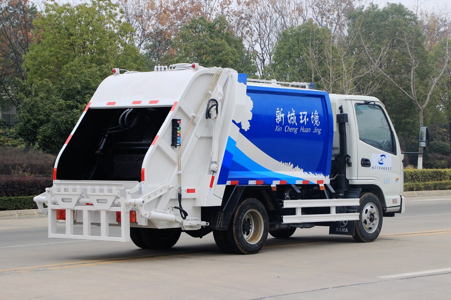• 壓縮垃圾車:由密封式垃圾廂、液壓系統(tǒng)、操作系統(tǒng)組成。整車為全密封型,自行壓縮、自行傾倒、壓縮過程中的污水全部進入污水廂,較為徹底的解決了垃圾運輸過程中的二次污染的問題,避免了給人們帶來不便,關(guān)鍵部件采用進口部件,具有壓力大、密封性好、操作方便、安全等優(yōu)點??蛇x配后掛桶翻轉(zhuǎn)機構(gòu)或垃圾斗翻轉(zhuǎn)機構(gòu)。性能介紹:壓縮倍率:2-3倍 選裝配置:翻轉(zhuǎn)斗、掛桶架、PLC自控等。