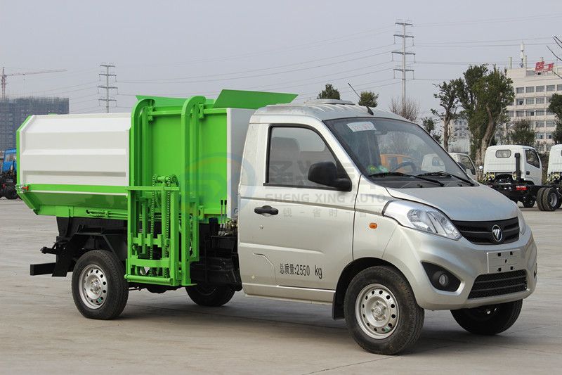 福田伽途3方側(cè)裝掛桶自卸式垃圾車(藍牌)