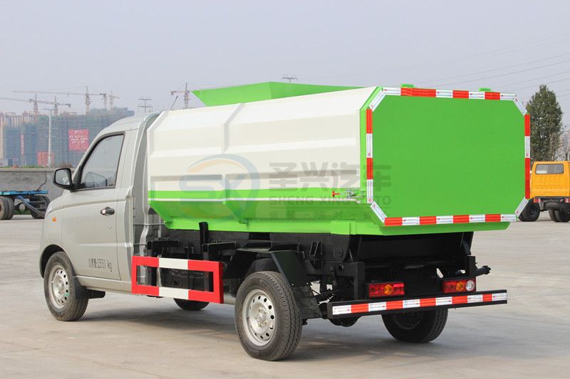 2.后門機構(gòu)設計先進。車廂后門開啟機構(gòu)參考歐洲先進的車型設計,結(jié)構(gòu)緊湊、合理,占用寬度尺寸小,為車廂寬度讓出更大空間,使該車更容易與各類垃圾壓縮站對接,有利提高工作效率并避免車與站對接過程中刮碰車廂。