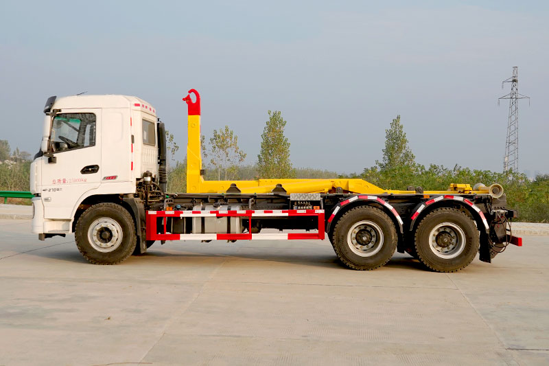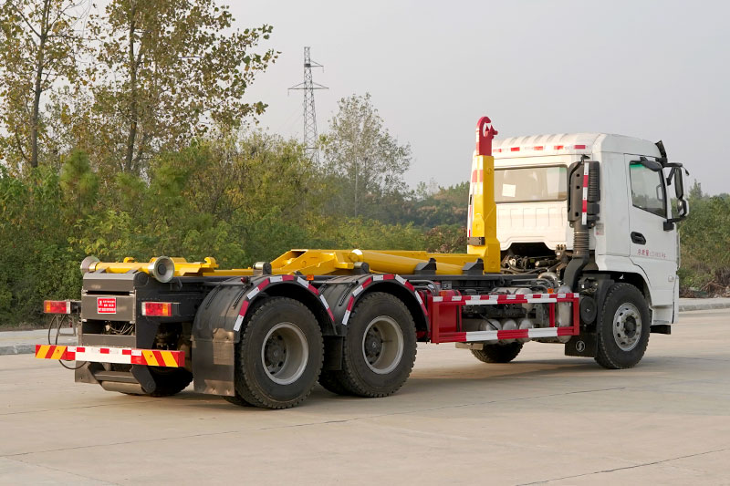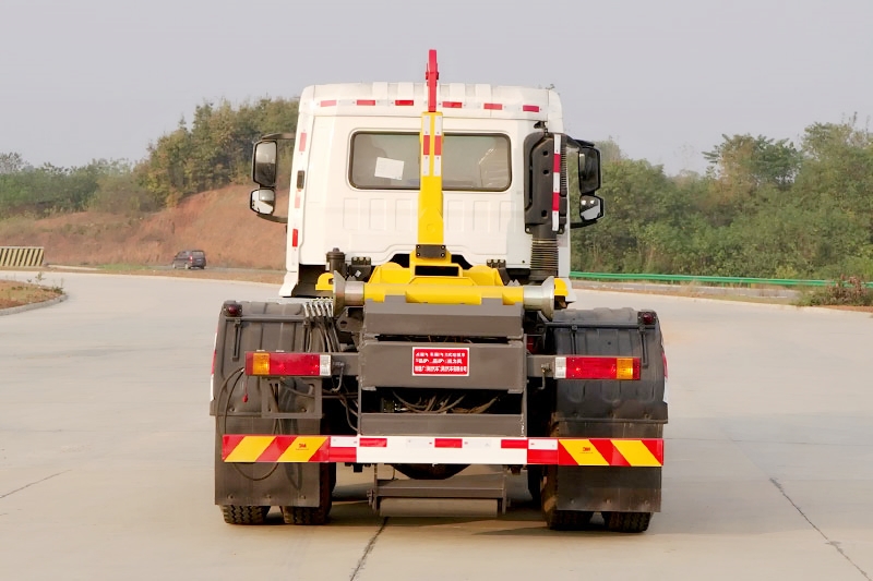陜汽軒德后雙橋鉤臂式垃圾車,標配可配合14-18方垃圾箱使用,也可配合同級別移動壓縮式垃圾箱使用,勾臂采用高強度優(yōu)質(zhì)錳鋼,副車架采用16號低合金槽鋼、20號方管與8mm、5mm、4mm、16Mn鋼板焊接而成,翻轉(zhuǎn)架與活動勾臂垃圾車動作設(shè)計合理可靠,實現(xiàn)拉箱、鎖緊、放箱和自卸操作簡單方便,控制方式為駕駛室智能控制,也可根據(jù)用戶需要選裝駕駛室外傳統(tǒng)操作桿進行控制。