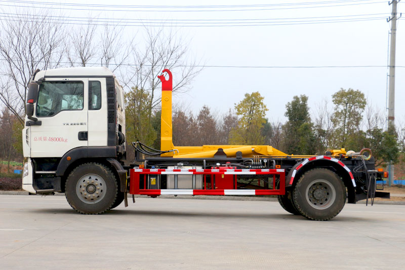 重汽豪沃鉤臂式垃圾車(chē),標(biāo)配可配合12-14方垃圾箱使用,也可配合同級(jí)別移動(dòng)壓縮式垃圾箱使用,勾臂采用高強(qiáng)度優(yōu)質(zhì)錳鋼,副車(chē)架采用16號(hào)低合金槽鋼、20號(hào)方管與8mm、5mm、4mm、16Mn鋼板焊接而成,翻轉(zhuǎn)架與活動(dòng)勾臂垃圾車(chē)動(dòng)作設(shè)計(jì)合理可靠,實(shí)現(xiàn)拉箱、鎖緊、放箱和自卸操作簡(jiǎn)單方便,控制方式為駕駛室智能控制,也可根據(jù)用戶需要選裝駕駛室外傳統(tǒng)操作桿進(jìn)行控制。