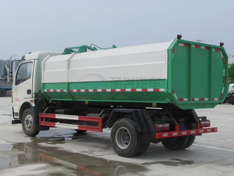 (圖為東風(fēng)多利卡6方掛桶垃圾車---專業(yè)垃圾車廠家)