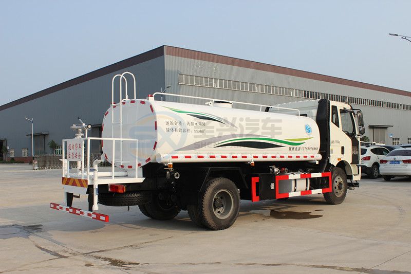 解放12噸灑水車(chē)采用一汽解放J6底盤(pán),白色排半可前翻駕駛室,大柴180馬力國(guó)五發(fā)動(dòng)機(jī),6擋變速箱,軸距4500mm,9噸后橋,9.00R20原廠鋼絲胎,原廠abs,帶方向助力,離合助力器,氣剎制動(dòng),原廠空調(diào)。