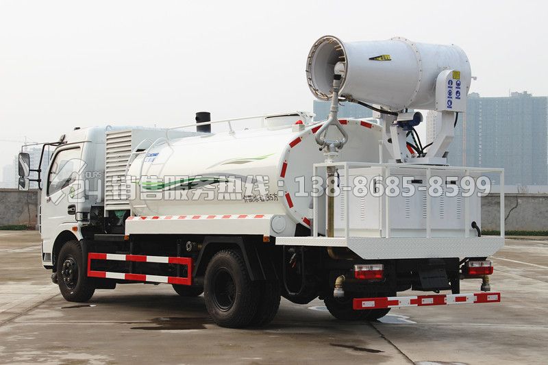 我們從上方抑塵車圖片看出,在底盤下方有前沖功能,在后置平臺(tái)有后灑功能和綠化高炮功能,兩輪子中間有側(cè)噴功能,這樣抑塵車就具有了灑水車的全部功能,前沖,后灑,側(cè)噴,綠化高炮,但是真的只有這些功能嗎?不是還有一項(xiàng)噴霧降塵功能,霧炮機(jī)組,這是抑塵車的核心功能。
