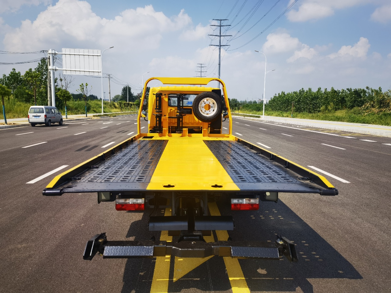 ★上裝配置: 采用高強(qiáng)鋼沖孔板,雙側(cè)操作裝置 ,1個(gè)4噸液壓絞盤(25米鋼絲繩),1個(gè)工具箱,擋胎2個(gè),4根綁帶。板長(zhǎng):5.3米,寬:2.3米(上裝可承載2.5噸)可加裝后托臂總成一套,七字叉一對(duì),抱胎桶一對(duì)。