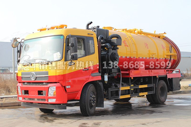 東風(fēng)天錦13方清洗吸污車配置如下:,康明斯180馬力、東風(fēng)六擋變速箱、10.00鋼絲胎;罐體容積:污水罐9.5方,清水罐3.5方,天津通潔250流量高壓泵,該款車帶副發(fā)動機,副發(fā)動機主要作用是用來帶動吸污水循環(huán)泵的。