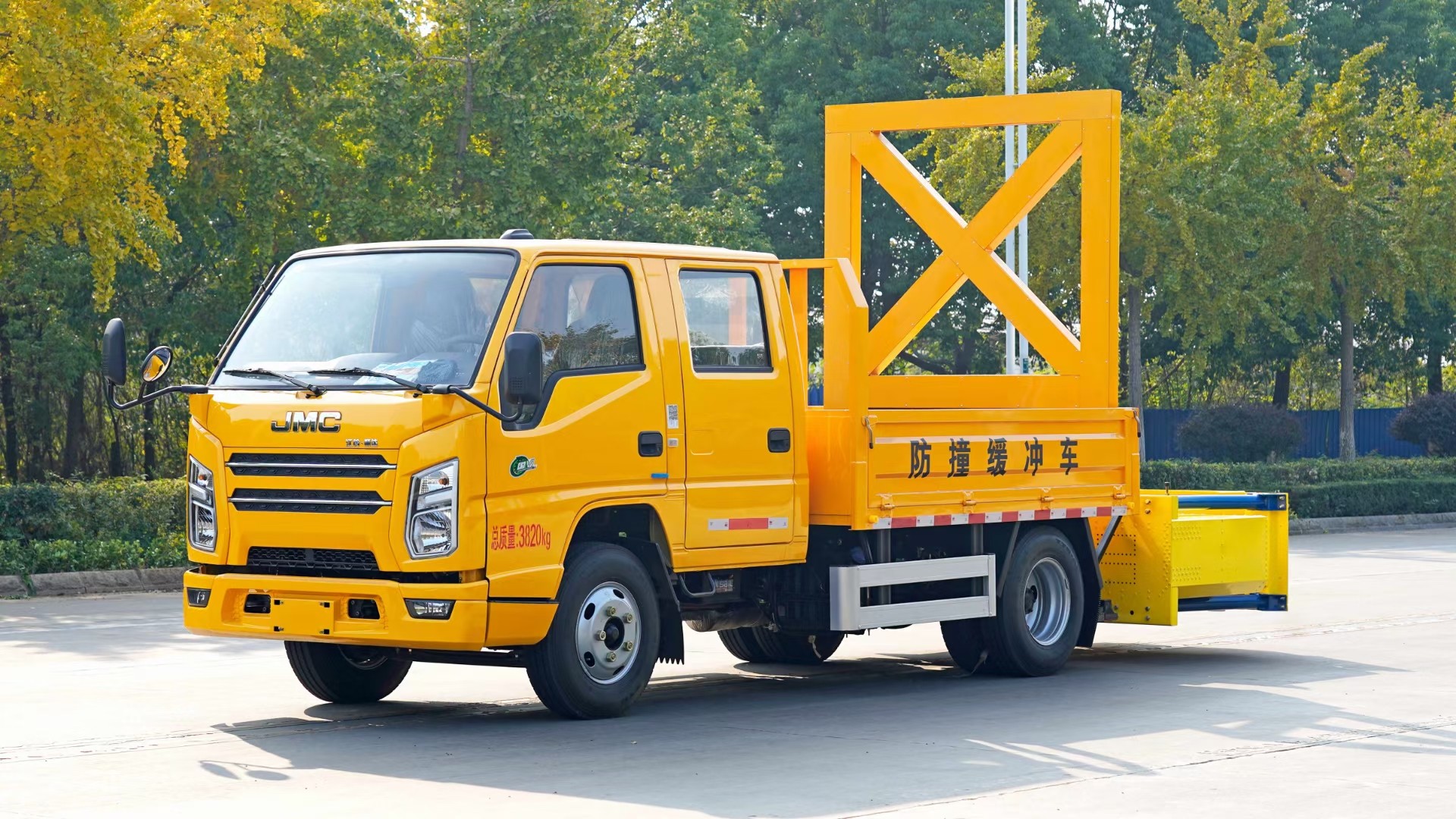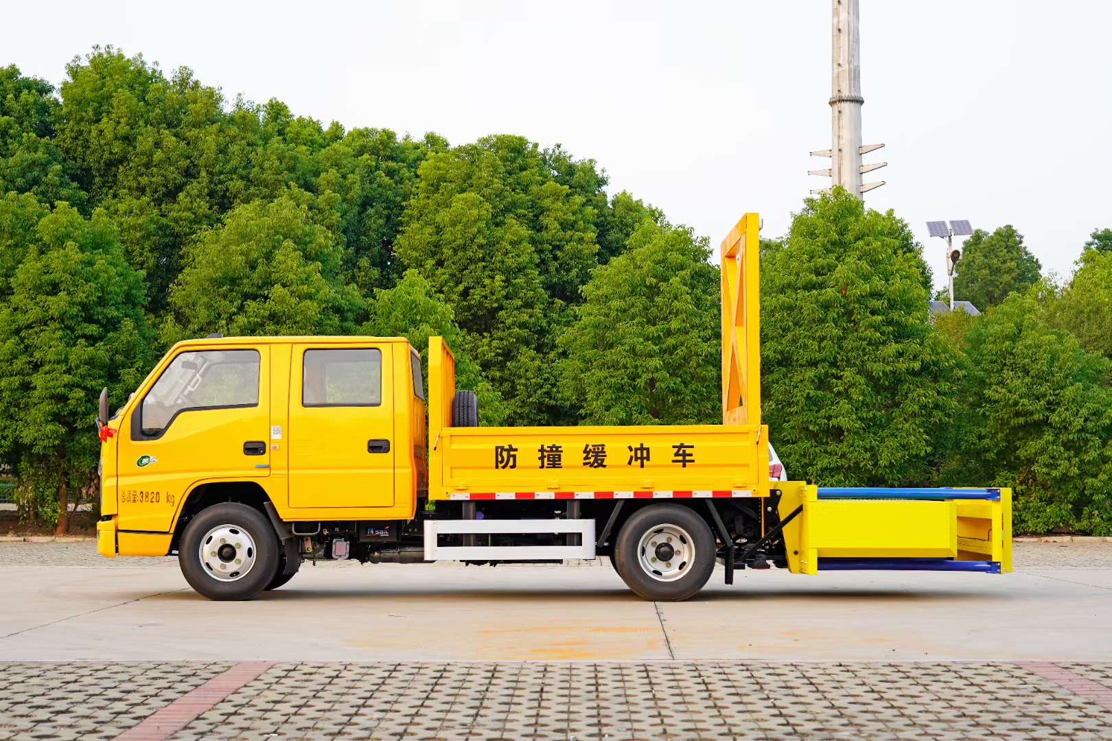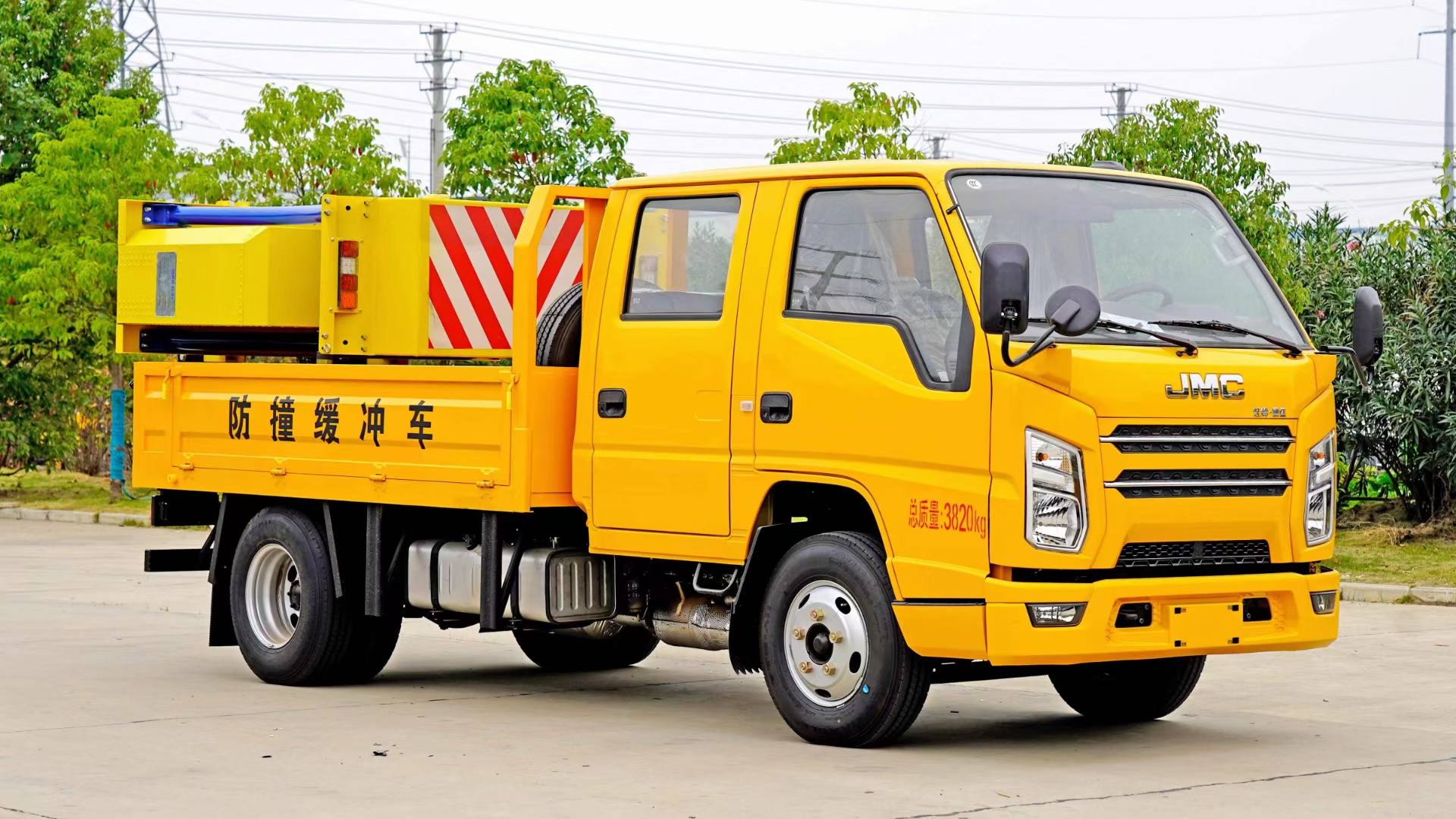 上裝采用Q235國標(biāo)邊3mm底板花紋板4mm厚,箱體后部防撞緩沖模塊包采用國際知名技術(shù)產(chǎn)品70K防撞緩沖模塊,防撞緩沖吸能模塊主要由車載防撞緩沖墊和導(dǎo)向標(biāo)志架組成,可充當(dāng)施工作業(yè)車輛后方的緩沖衛(wèi)士。