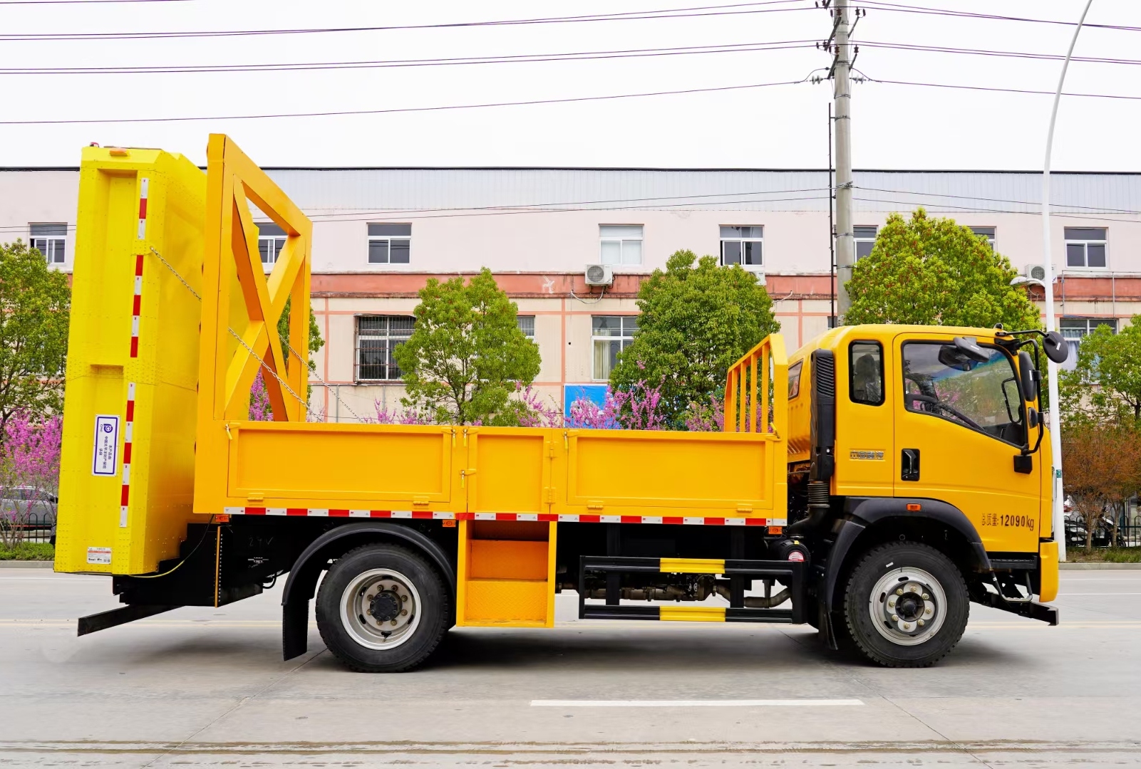 上裝貨箱采用Q235國標(biāo)優(yōu)質(zhì)碳鋼板,箱體后部防撞緩沖模塊包采用國際知名技術(shù)產(chǎn)品100K防撞緩沖模塊,防撞緩沖裝置主要由車載防撞緩沖墊和導(dǎo)向標(biāo)志架組成,充當(dāng)施工作業(yè)車輛后方的緩沖衛(wèi)士。 如若發(fā)生追尾事故,能夠在肇事車輛和前方施工作業(yè)區(qū)域之間構(gòu)建一個緩沖區(qū)域,通過機(jī)具結(jié)構(gòu)變形吸收撞擊的能量,最大限度地降低被保護(hù)人員及設(shè)備遭到碰撞的幾率。高性能液壓系統(tǒng),可實現(xiàn)快速舉升和落下操作。高清LED顯示屏可由手機(jī)APP控制,可隨時切換顯示內(nèi)容,一鍵操作方便快捷。