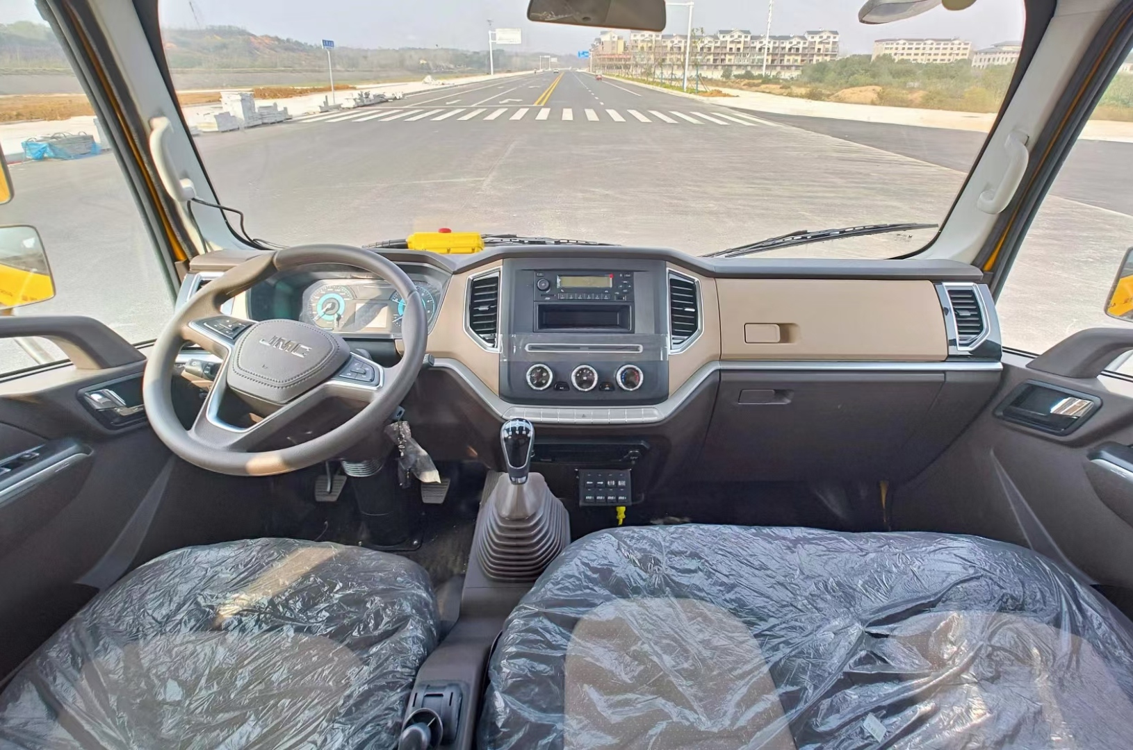該車采用江鈴凱運(yùn)國六專用輕卡底盤,凱運(yùn)系列專用雙排寬體駕駛室,江鈴122馬力柴油發(fā)動機(jī),5檔手動變速箱,3360mm軸距,7.00R16鋼絲胎,方向助力、離合助力、ABS防抱死系統(tǒng)、氣剎制動,原廠空調(diào)。