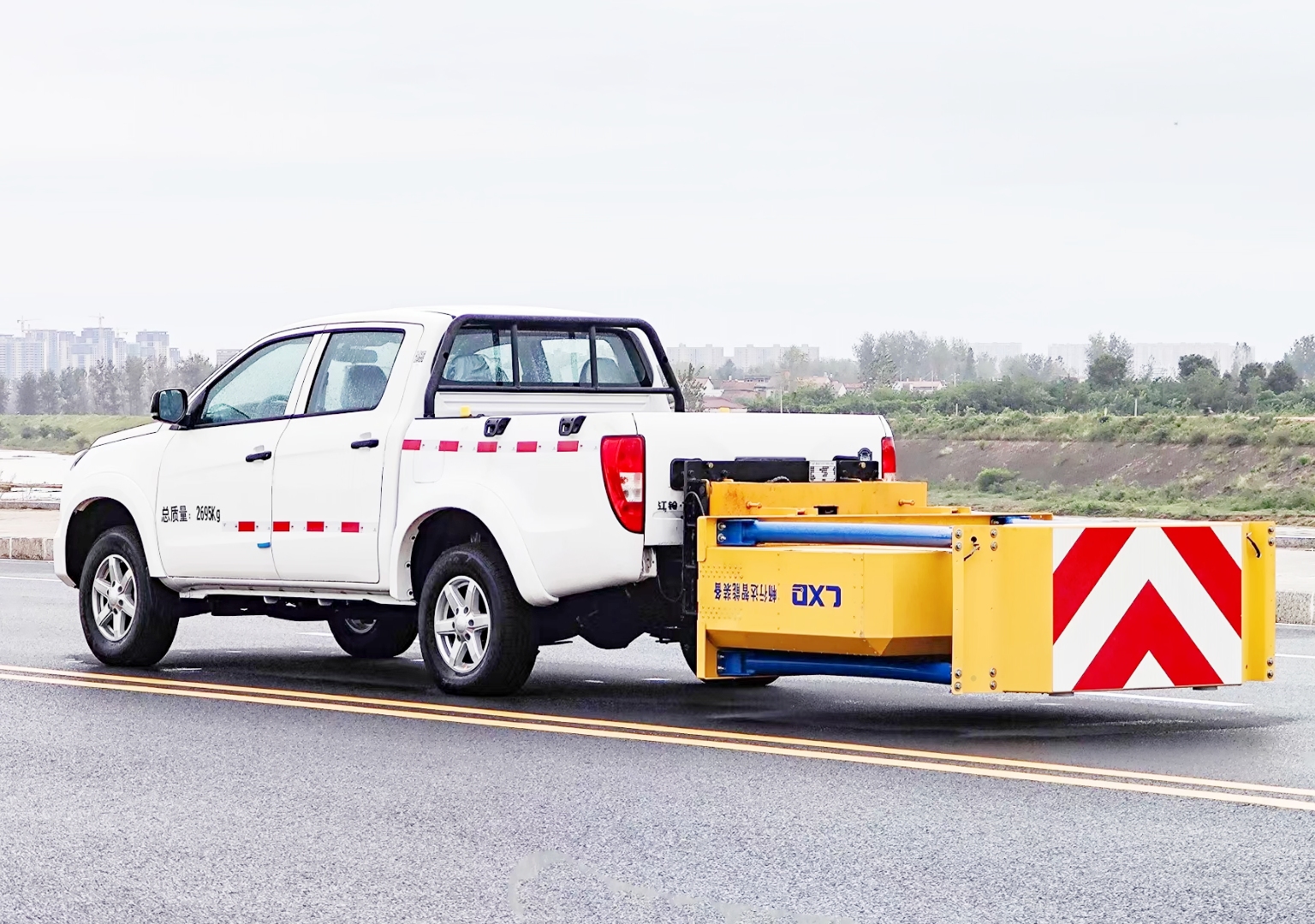 • 防撞緩沖車主要用于高速公路施工,隧道施工,公路施工。最大限度地降低了城市道路和高速公路養(yǎng)護(hù)施工中,施工車輛、養(yǎng)護(hù)人員和事故處理交警的安全風(fēng)險(xiǎn)問題。防撞緩沖車的防撞緩沖吸能模塊主要由車載防撞緩沖墊和導(dǎo)向標(biāo)志架組成,充當(dāng)施工作業(yè)車輛后方的緩沖衛(wèi)士。如若發(fā)生追尾事故,能夠在肇事車輛和前方施工作業(yè)區(qū)域之間構(gòu)建一個(gè)緩沖區(qū)域,通過機(jī)具結(jié)構(gòu)變形吸收撞擊的能量,最大限度地降低被保護(hù)人員及設(shè)備遭到碰撞的幾率。
