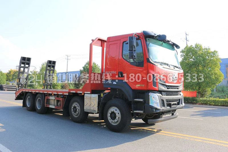 東風柳汽乘龍H5型前四后八平板運輸車,搭配玉柴350馬力國六發(fā)動機,法士特12檔變速箱,2050+3200+1350mm軸距,前橋5.5T,后橋13T,板簧11/11/13,帶原廠空調,方向助力,斷氣剎制動系統(tǒng),帶剎車自動調節(jié)臂,防飛濺裝置,帶大燈調節(jié)功能,中控鎖,電動玻璃,氣囊減震座椅,350L鋁油箱,ABS。
