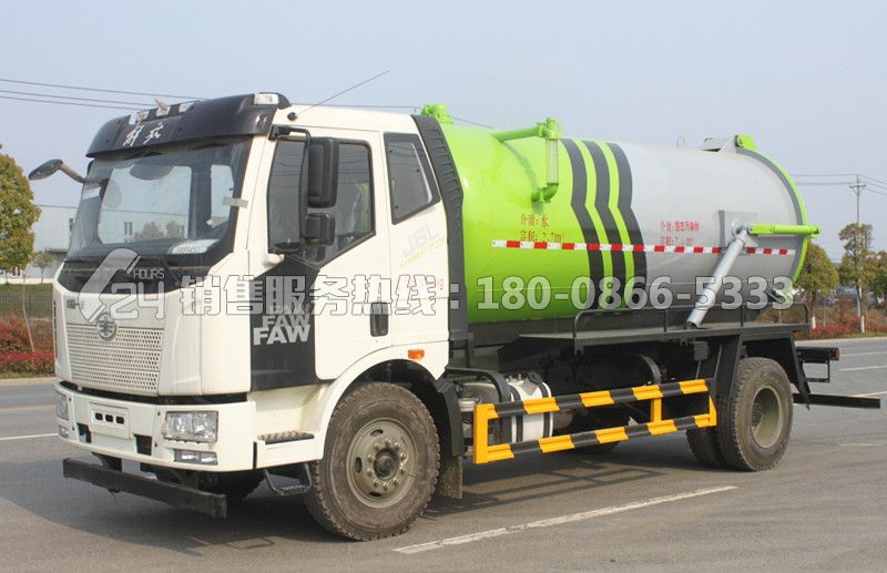 解放J6L吸污車罐體形狀為圓柱形,采用武鋼6mm厚優(yōu)質(zhì)碳鋼鋼板,罐體前部帶吸污窗,洗手裝置,舉升裝置,吸污管5米一根,罐體多種顏色選擇,其余按廠內(nèi)標準配置制作。隨車配置大功率真空吸污泵和優(yōu)質(zhì)液壓系統(tǒng),罐體封頭一次壓鑄成型、罐體可后開、雙頂自卸。罐內(nèi)污物可通過后蓋直接傾倒,具有真空度高(比吸糞車的吸力更大)、噸位大、效率高、用途更廣泛的特點。(垂直吸程:≥8 m,工作壓力:8500Pa,理論抽速:120L/S,軸功功率:≤13kw,進排氣口徑:50mm,抽滿罐時間:<5 min,排滿罐時間:<4min。吸污車采用大功率真空泵,一次壓鑄成型的封頭-,加厚的抗壓罐體,雙頂液壓系統(tǒng),是比吸糞車功能更強大的車型。