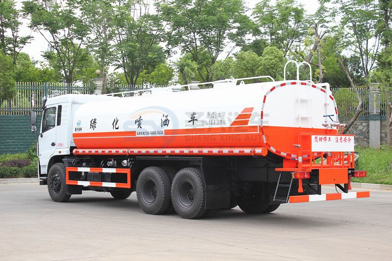 罐體實際容積22立方,采用武鋼碳鋼板制作厚度5mm,帶大功率灑水泵(型號60/90或50/110)、可自吸水、帶消防接口、可從消防栓進(jìn)水、前沖(噴)、后灑、側(cè)噴、罐體后帶工作平臺,綠化灑水炮(射程30米))置于工作平臺上,綠化灑水炮可360度旋轉(zhuǎn),可調(diào)成(大雨、中雨、毛毛雨、霧狀),帶65消防接口,前封頭帶水位計,后平臺主管路帶1寸澆花接口,后爬梯。平臺后部帶小安全告知牌:“隨時停車,注意安全”,帶兩根水管及陰陽端。罐體顏色:上白色下東風(fēng)蘭,罐體兩側(cè)噴“綠化噴灑車”“灑水車”等特定字樣,全車貼反光標(biāo)示。帶1個消防接頭,帶1個自流閥,1個過濾裝置、側(cè)防護(hù)欄,灑水音樂喇叭。