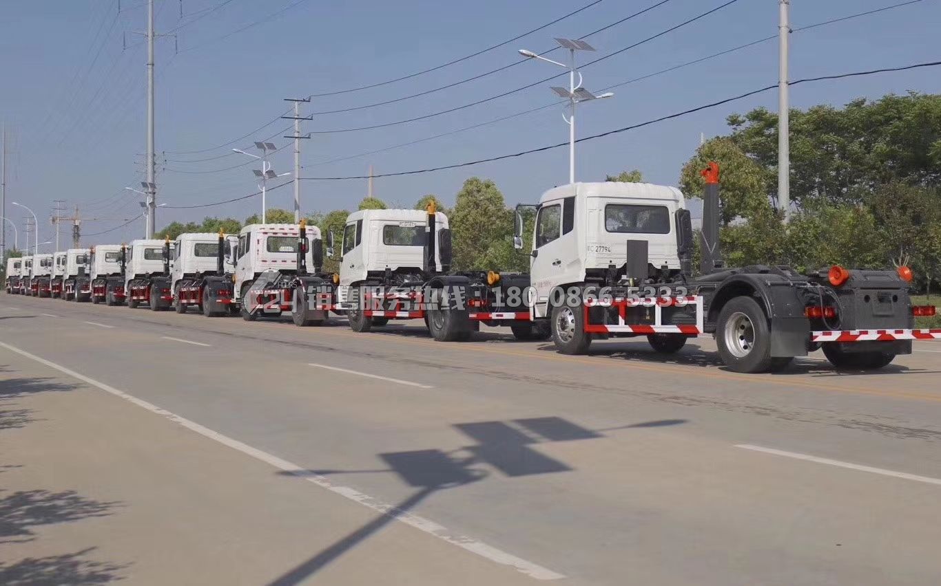 東風(fēng)天錦鉤式垃圾車11臺(tái)趕赴河南交付上戶