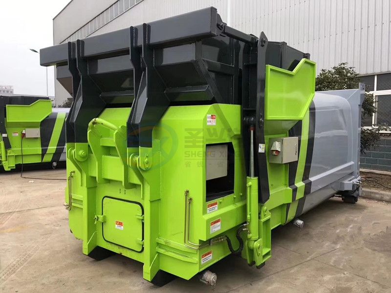 • 移動壓縮垃圾站的設(shè)備構(gòu)成:由翻轉(zhuǎn)機(jī)構(gòu),壓縮機(jī)頭,控制系統(tǒng),集裝箱,后門(卸料門)構(gòu)成。移動式垃圾壓縮設(shè)備集“密閉、除臭、壓縮、儲存”于一體,實現(xiàn)了整潔、美觀、安全、高效、環(huán)保,體現(xiàn)了當(dāng)今環(huán)保新時尚、新理念,提高了城區(qū)、社區(qū)等場所的整體形象及美觀,進(jìn)而提高了社會的低碳增強(qiáng)環(huán)保意識和廣大人民的環(huán)境保護(hù)理念,將市民們的小環(huán)境意識延伸到社會公共環(huán)境上來,必將得到市民的廣泛關(guān)注和大力支持,較好提升城市整體形象。